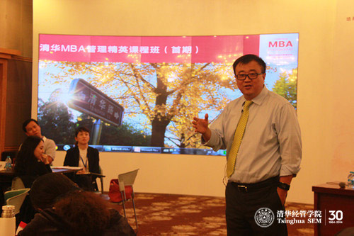开学当天,清华经管学院党委书记、领导力与组织管理系杨斌教授为学员讲授首堂必修课《驾驭战略与组织的卓越领导力》。来自广东珠江投资股份有限公司的学员李素梅感慨:“这次课使我收获很多,工作和生活都得到很多的启迪。感觉意犹未尽,希望增加课时,有更多的时间聆听大师的讲授。”(供稿:MBA教育中心 通讯员:云涛 编辑:沟通办)