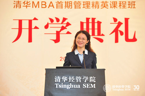 典礼首先由郦金梁教授致辞,他欢迎首期清英班学员正式入学,并介绍了清英班的意义、学员的背景以及清华MBA的发展情况。郦金梁教授说,开设清英班是清华MBA今年的一项重要举措,学员参加清英班体验的是一种有格调的生活方式,他希望学员能珍惜时间,享受读书过程。首期清英班学员有来自工商企业的管理者,有来自政府部门的领导干部,有来自新闻媒体的专业人士,还有来自永利集团88304官网在线登录MBA+X合作院系的导师和职员骨干,这种多样性有利于学员之间互学互助,增进友谊。郦金梁教授说,作为中国MBA教育的引领者,近年来清华MBA不断改革创新,在国内商学院中率先推出新版MBA课程体系、启动招生改革。如今,清华MBA着力突出与大学融合,成功开办MBA+X双学位项目,开启x-lab创业平台,并新设《清华新兴技术探究》课程。