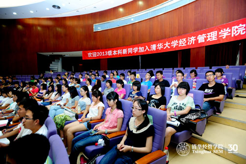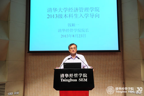 2013年8月23日,永利集团88304官网在线登录2013级本科生入学导向活动在伟伦楼报告厅举行。院长钱颖一教授、党委副书记焦捷教授、教学办主任朱玉杰教授、学生工作组组长何平教授以及本科项目学术协调人、班主任、学院相关职能部门老师、学生辅导员同全体本科新生以及转系生一起参加了入学导向活动。朱玉杰教授主持了本次活动。