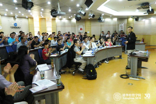 经管学院非常重视此次台湾企业家的培训课程,组织了学院最优秀的师资为该班授课,院长钱颖一教授也于6月18日下午专门来到课堂,与学员们深入探讨交流了中国宏观经济与货币政策相关的话题。