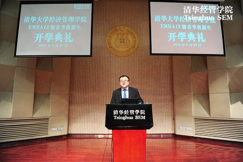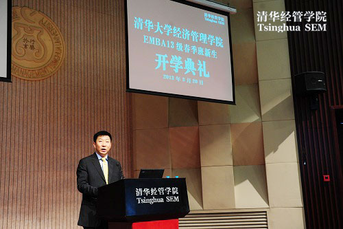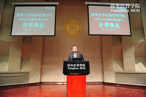 2013年3月20日,清华EMBA2013级春季开学典礼在清华经管学院伟伦报告厅举行。院长钱颖一、党委书记杨斌、EMBA教育中心执行主任王勇、副主任贾莉、副主任孙美琦等老师出席了开学典礼。