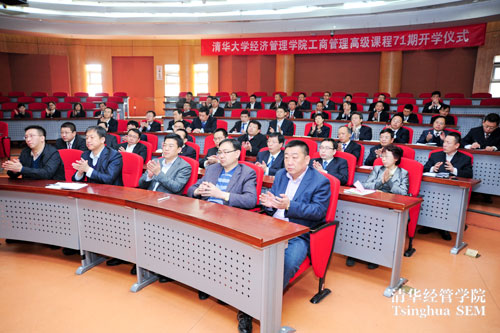 2013年3月27日,清华经管学院工商管理高级课程第71期开学仪式在学院举行。来自全国各地的87名企业高级管理人员汇聚于清华,即将开启3个月的学习生活。学院党委副书记朱岩教授,高管培训中心主任薛镭教授以及高管培训中心学术主任程佳惠教授出席了开学仪式,高管培训中心常务副主任刘燕欣老师主持。