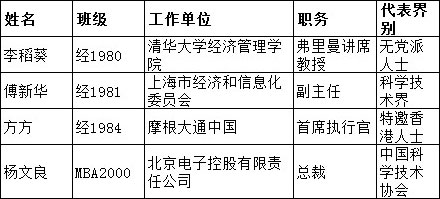 当选第十二届全国政协委员的清华经管学院本科、硕士、博士、MBA校友(共4人)