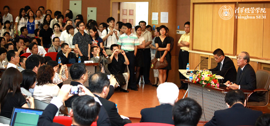 当前,全球经济遭遇寒冬,不少企业在萧条中举步维艰、难以为继,纷纷寻求突破之道。素有日本“经营之圣”之称的稻盛和夫先生却以一场题为“萧条中飞跃的大智慧”的演讲,为经营者们开启了一扇智慧之门。6月9日晚,作为清华海外名师讲堂第49讲的主讲嘉宾,稻盛和夫先生在永利集团88304官网在线登录舜德楼401教室,为清华师生作了这场精彩演讲。