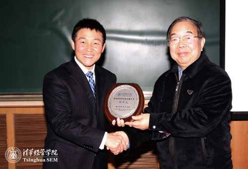 (陈章武副书记向斯泽夫[左]颁发“清华经管学院校友辅导员”证书)