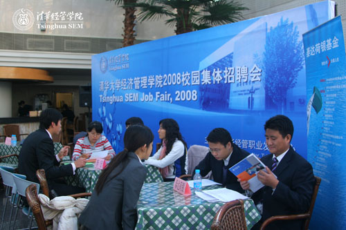 今年秋季学期开学以来,广大用人单位对清华经管学院学生的招聘需求依然旺盛,举办专场校园招聘活动的企业总数与往年同期大体相当。由于受到全球金融风暴的冲击,一些行业、部分外资企业缩减了招聘规模,甚至暂停了校园招聘活动;学院职业发展中心主动出击,开拓与各用人单位的合作关系,并加大推介毕业生工作力度,为广大用人单位和学生提供周到、细致的招聘服务。参加本次集体招聘会的各企业都是其所在行业中的佼佼者,而且各企业在所有制、行业等方面的分布与往年相比也更加均衡。参会单位中,不仅有艾默生、德国电信咨询、路透集团等国际知名外资企业,也有中外运、中纺集团、中铁物资总公司等国有大中型企业,以及李宁、新奥、新华信等多家享有盛誉的民营企业。