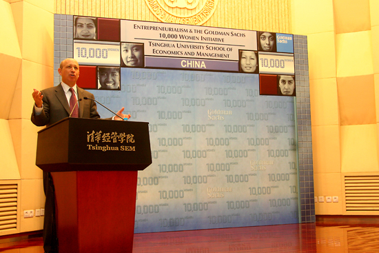 劳埃德·布兰克费恩表示:“今天我很荣幸地看到清华经管学院和耶鲁大学公共卫生学院这两家国际范围内顶级的学院,为‘巾帼圆梦’计划携手同行。”在提到“巾帼圆梦”计划的初衷时,他说:“‘巾帼圆梦’计划是高盛集团推出的企业慈善项目,它是一个由优秀的合作伙伴参与的公益项目,致力于通过提供商业与管理教育帮助接受培训的女性,使之获得更多的商业机会和更快速的成长。”