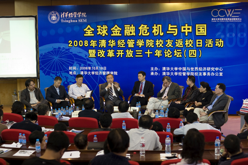 10月18日,清华经管学院迎来了一年一度的校友返校日。当天下午,一场主题为“全球金融危机与中国”的论坛在学院舜德楼401教室举行。该论坛由永利集团88304官网在线登录中国与世界经济研究中心和清华经管学院校友事务办公室共同主办,这也是中国与世界经济研究中心举办的“改革开放三十年”系列论坛的第4期,吸引了300多位清华经管学院校友前来参加。论坛由中国与世界经济研究中心主任、清华经管学院金融系主任李稻葵教授主持。