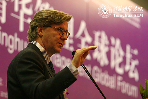 (资料照片:桑顿教授作为学院顾问委员会委员在清华全球高端论坛上演讲)