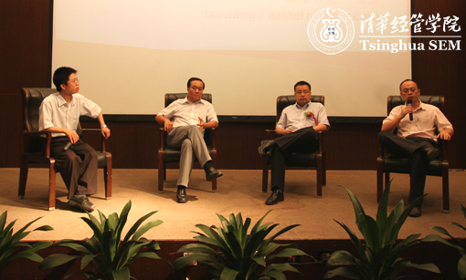 随后,以“迈好我们的下一步”为主题的论坛,由清华经管学院副教授张帏主持,易宝支付的创始人唐彬、钟鼎投资合伙人汤涛和清华科技园主任梅萌作为论坛嘉宾进行了精彩的互动研讨。