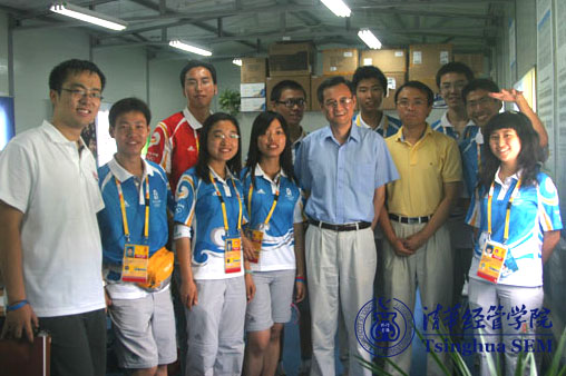 8月13日,清华经管学院院长钱颖一、党委副书记朱岩等一行前往国家游泳中心——水立方、国际广播中心、奥林匹克大厦和奥运媒体村等地,看望慰问战斗在奥运服务一线的经管学院奥运志愿者们。
