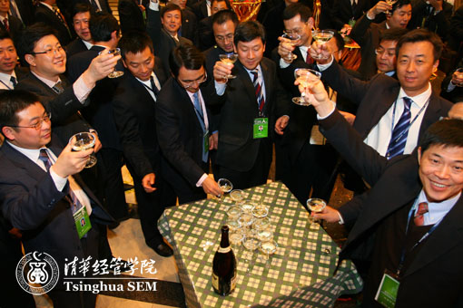 08-C班秦皇岛领先科技发展公司董事长徐志文说,“‘吾常终日而思,不如须臾所学’,清华老师多年积累的智慧,将拓宽我们的思路,提升我们的境界,开启我们的潜能,我们可以在教室聆听专家学者的真知灼见,在讲台上各抒己见,在酒熟耳酣之际坐而论道,分享各自的实践经验和人生体悟。在这里,我们获取的将不仅仅是专业的管理知识,更是钻石般的同学情谊。”