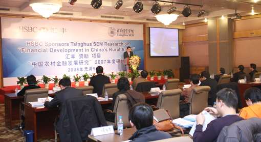 该项目是于2006年3月启动,由汇丰赞助清华1000万元进行的为期三年的农村金融研究项目。旨在通过资助清华学子深入农村,调研当地金融市场现状,从而支持中国政府促进农村地区经济的发展和社会主义新农村的建设。调研的主要内容包括:农村金融服务需求现状、农村的金融服务现状、农村金融市场发展的影响因素、商业银行进入农村金融市场的模式研究等四方面。该项目的另一重要目的是组织学生进行农村金融发展调查,为学生创造了解农村、接触农民的机会,从而提高学生对中国国情的认识水平,增强他们的社会责任感和事业心。2006年度,清华经管学院共有近200名师生利用暑期,走访了中西部四省29县的170多个村庄,进行了细致深入的调研,收集了大量有价值的数据。第一年的调研成果研讨会已于2006年底在清华经管学院举行。