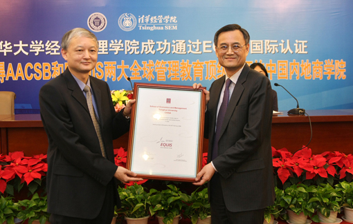 对此,清华经管学院院长钱颖一教授表示:“去年四月,清华经管学院刚刚通过另一顶级国际认证——AACSB认证,成为我国内地首家也是唯一一家获此认证的学院,这一纪录截至目前仍未被打破。紧接着,我们又通过了AACSB会计认证。再加上这次通过的EQUIS国际认证,清华经管能够在如此短的时间内将此三项认证全部收入囊中,实属不易。经历了这个艰苦的认证之路,清华经管学院朝着世界一流商学院的标准又迈进了一大步。这不仅是清华经管学院的一大步,也应该算做中国工商管理教育的一大跨越。”