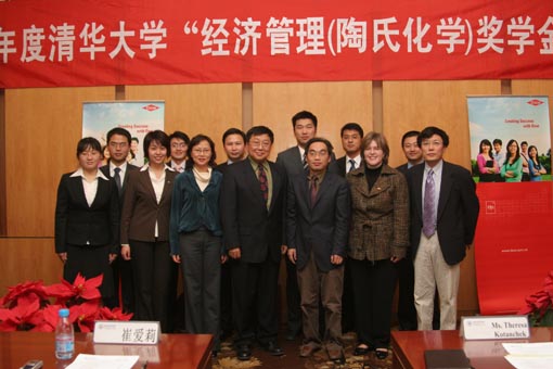 12月11日下午,2007年度永利集团88304官网在线登录“经济管理(陶氏化学)奖学金”颁奖典礼在清华经管学院舜德楼418举行。陶氏化学全球技术研发总监特瑞斯·高恬莎(Theresa Kotanchek)女士等一行六人代表陶氏公司出席了颁奖活动。获奖学生所在院系的相关领导和老师也出席了颁奖典礼,他们是:清华经管学院党委副书记朱恒源、化工系党委副书记邱彤、化学系党委副书记崔爱莉等。活动由清华经管学院校友与发展办公室主任潘庆中主持。
