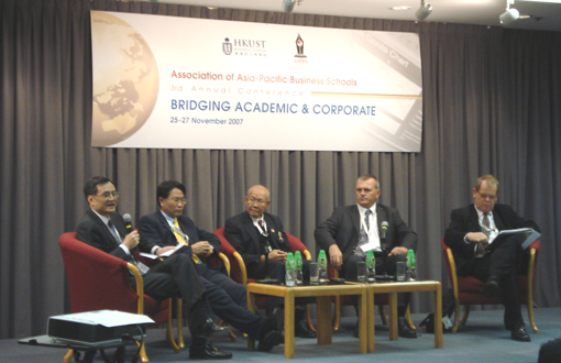 亚太管理学院联合会(Association of Asia-Pacific Business Schools,AAPBS)第三届年会于2007年11月25日至27日在香港科技大学举行。本次年会共有90多人参加,他们来自亚太地区的46所管理学院和商学院,其中包括11所来自中国大陆的管理学院。清华经管学院院长钱颖一作为联合会现任主席,与学院党委书记杨斌和院长助理钱小军共同参加了会议。钱颖一院长在开幕式致辞中简要总结了联合会在成立3年以来取得的成绩,对前两任主席和成员们的努力和支持表示感谢,并展望了明年联合会的主要活动。