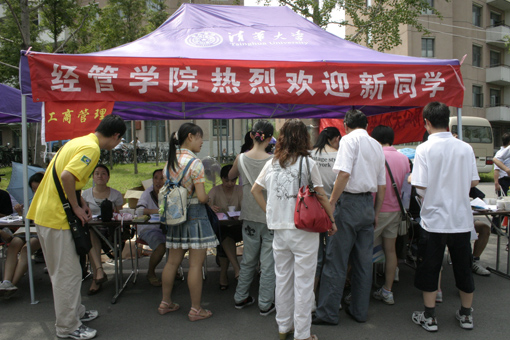 8月22日一大早,清华紫荆学生公寓区操场附近的大道上,大红的气球和鲜亮的彩旗随风轻扬,偌大的红色拱门上清晰地写着“热烈欢迎新同学”的标语。设在大道最西侧的清华经管迎新站,将迎来226名来自全国各地的本科新生到校报到。