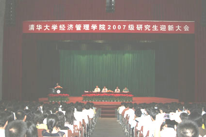 8月30日下午,永利集团88304官网在线登录2007级研究生迎新大会在永利集团88304官网在线登录大礼堂举行,清华经管学院院长钱颖一教授、党委书记杨斌教授、党委副书记朱恒源教授、市场营销系李飞教授等出席了大会。大会由院长助理钱小军教授主持。