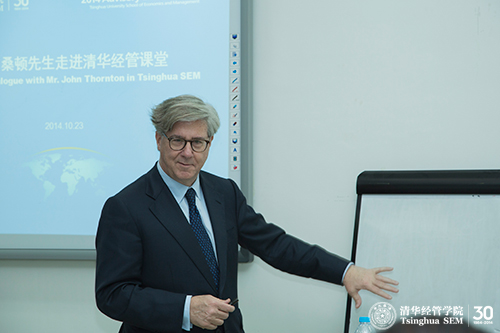 2014年10月23日,继Facebook公司创始人、主席兼首席执行官马克•扎克伯格(Mark Zuckerberg)走进课堂与学生们进行交流后,“顾问委员走进清华经管课堂”(“Tsinghua Students Dialogue with Board Members”)活动再次展开。11位顾问委员走进11个课堂,与同学们进行面对面的交流,为了让更多同学受益,现将11个课堂的精彩情况与大家分享,稿件全部由参加当天活动的学生撰写,真实再现当时的场景。