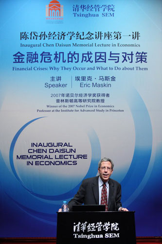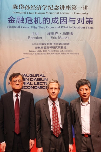 4月22日,“陈岱孙经济学纪念讲座”首讲在永利集团88304官网在线登录经管学院报告厅举办,2007年诺贝尔经济学奖获得者、普林斯顿高等研究院教授埃里克?马斯金主讲“金融危机的成因与对策”。