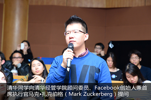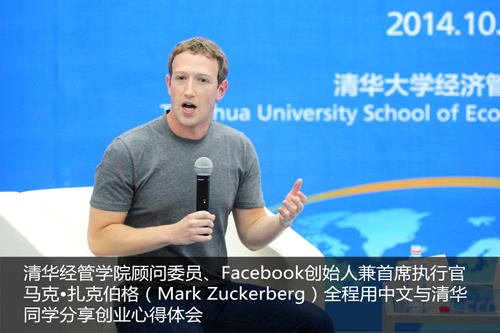 首先,扎克伯格风趣地介绍了自己学习中文有三个缘由。第一是希望能够和他的华裔太太的奶奶说说话。第二是希望通过学习中文来了解中国文化。第三是他喜欢挑战,因为中文很难学。他介绍说他曾4次访问中国,这次来中国是为了参加清华经管学院顾问委员会的活动。他表示很荣幸能够加入清华经管学院顾问委员会,希望通过这个机会来支持中国的教育。他说,如今已有超过140名清华毕业生在Facebook工作,他欢迎今后有更多的清华学生加入Facebook。