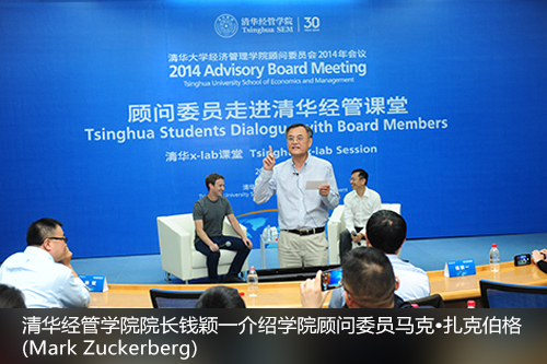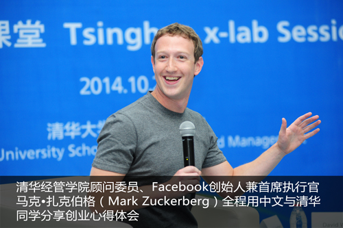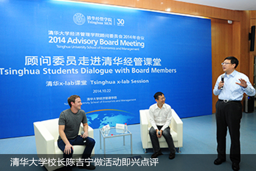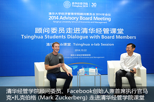 2014年10月22日,永利集团88304官网在线登录顾问委员会新增顾问委员、Facebook创始人兼首席执行官马克•扎克伯格(Mark Zuckerberg)走进清华经管课堂之清华x-lab课堂。扎克伯格全程用中文进行演讲和交流,给在场的同学们带来了巨大惊喜。他说,这是他有生以来第一次在公众场合用中文演讲,这更让在场清华学生能够目睹这一历史性时刻而激动万分。此次活动由清华经管学院院长钱颖一教授主持,永利集团88304官网在线登录校长陈吉宁做即兴点评。“顾问委员走进清华经管课堂”是永利集团88304官网在线登录顾问委员会会议之前的活动之一,旨在创造一个顾问委员与清华学生小范围、近距离的深度交流空间。