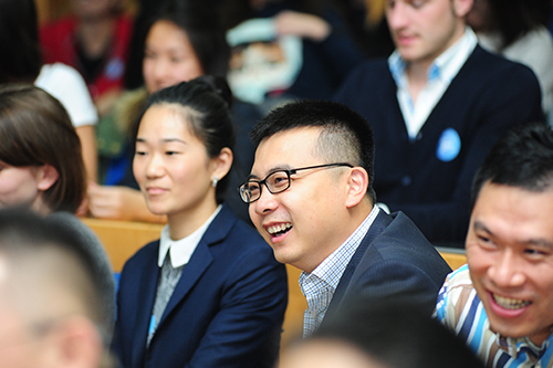 活动开始首先由一段视频带领大家追溯了Facebook公司创立十年来的历程。随后,清华经管学院院长钱颖一院长致欢迎辞,他幽默风趣地向在场的同学们介绍了这场走进清华经管课堂顾问委员的背景,特别介绍了扎克伯格与清华经管学院的“机缘”——作为清华经管学院顾问委员会最年轻的委员,今年刚满30岁的扎克伯格与清华经管学院同年诞生,而他出生的日子仅比学院成立大会召开的日子早5天。此次走进课堂活动以扎克伯格与现任Facebook公司拓展部工程总监、清华校友魏小亮(计算机1997)对话的形式展开。
