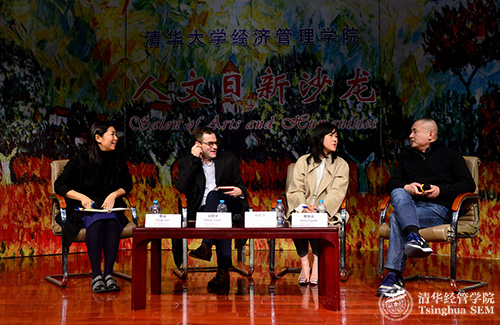 清华经管学院“人文日新沙龙活动”嘉宾,左起:曾焱、田霏宇、钟嘉欣、曾梵志